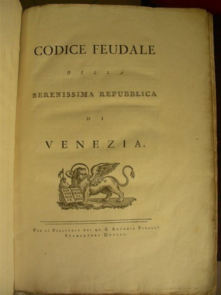 CODICE FEUDALE della Serenissima Repubblica di Venezia.