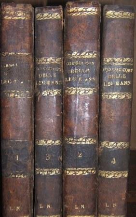 COL CONFRONTO DELLE LEGGI ROMANE E DEL DRITTO MEDIO SICOLO;ANNOTATO DI TUTTI I9 CORRISPONDENTI REALI DECRETI,RESCRITTI,REGOLAMENTI E ATTI MINISTERIALI PUBBLICATI FINORA,COLLA INDICAZIONE DEGLI ARTICOLI DELLE DIVERSE PARTI DEL CODICE, DI ALTRE LEGGI,STATUTI E REGOLAMENTI CHE VI HANNO CONNESSIONE, E COLLA CORRISPONDENZA DEGLI ARTICOLI DEL CODICE CIVILE FRANCESE.4 TOMI DI CIRCA 300-500 PAG. CADAUNO. PIATTI UN PO ROVINATI ALLE ESTREMITA. INCISIONI AL DORSO SBIADITE.