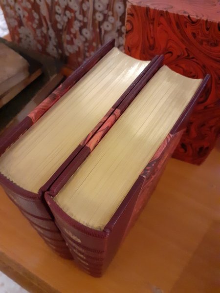 Volume rilegato in mezza pelle Rigoldi Monza; taglio superiore in oro zecchino; scritte e decorazioni su costa in oro zecchino.