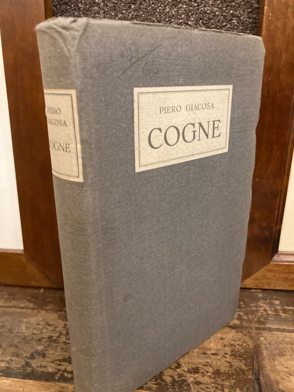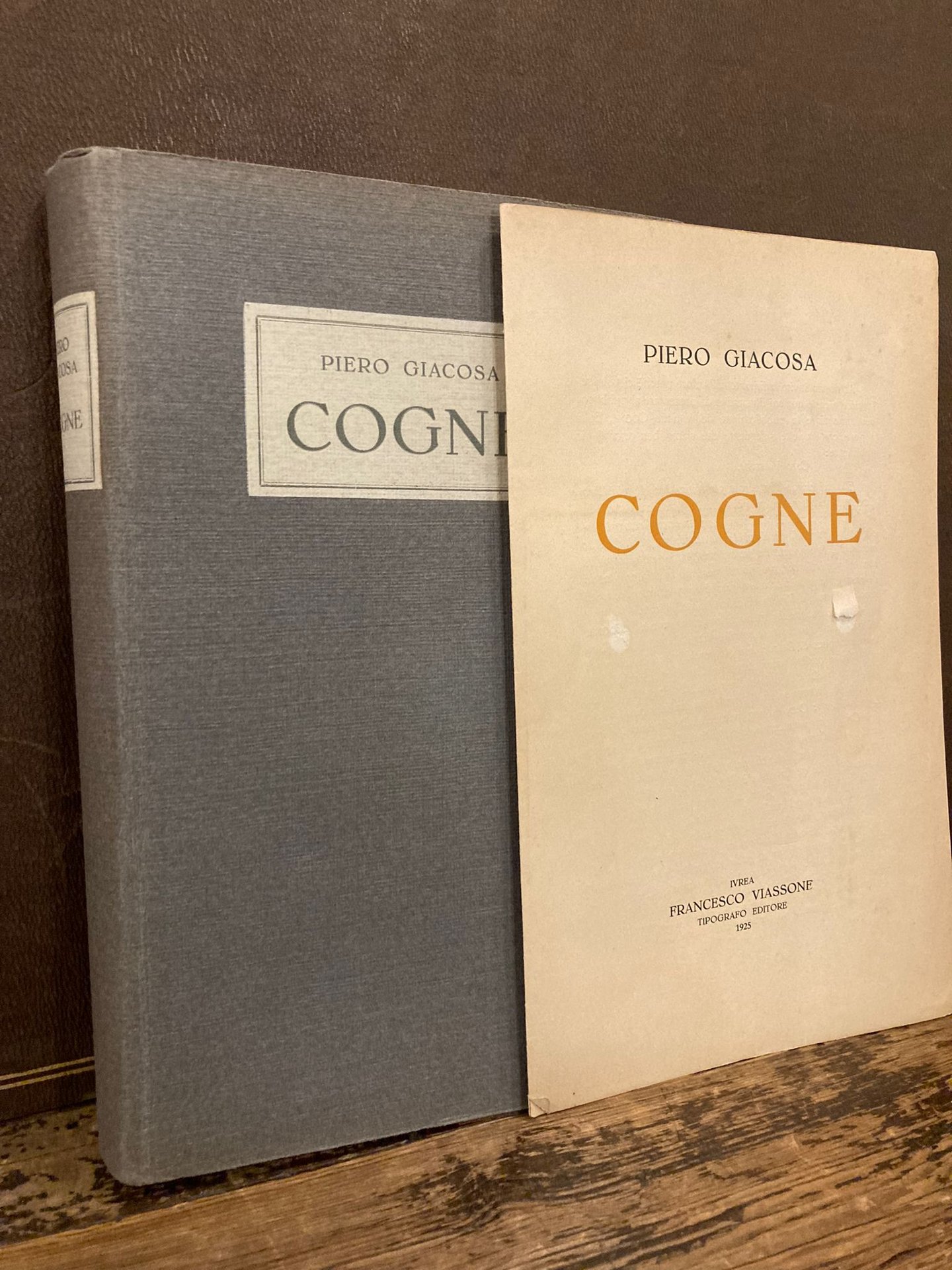 In-8° (23.5x15.5 cm), pp. 367, (5), cartonatura editoriale grigia con titolo a stampa su doppio tassello, uno al piatto anteriore e uno al dorso, marca tipografica en grisaille al posteriore. 3 schizzi n.t. e 43 illustrazioni fotografiche applicate f.t. Ottimo esemplare Prima edizione di questa rilevante monografia sulla Val di Cogne. Sono presenti cenni sulla storia locale, sui valichi fra Canavese e Valle d'Aosta, sul popolo dei Salassi, sui boschi, le miniere, l'industrialismo e l'edilizia cognensi, le antiche case di Cogne, la caccia, il massiccio del Gran Paradiso e le sue antiche rappresentazioni cartografiche, il nome della Grivola, le sciagure alpine, gli alberghi, le leggende e le fiabe legate alla località valdostana. Piero Giacosa (Ivrea, 1853-Torino, 1928), fratello di Giuseppe Giacosa, fu professore ordinario di medicina e di chimica fisiologica all'Università di Torino, autore di numerose opere di medicina, farmacologia e storia delle teorie mediche, nonché appassionato della montagna. Cfr. Perret, 1920: 'Importante monographie'. B.N. C.A.I. Manca all'Angelini.