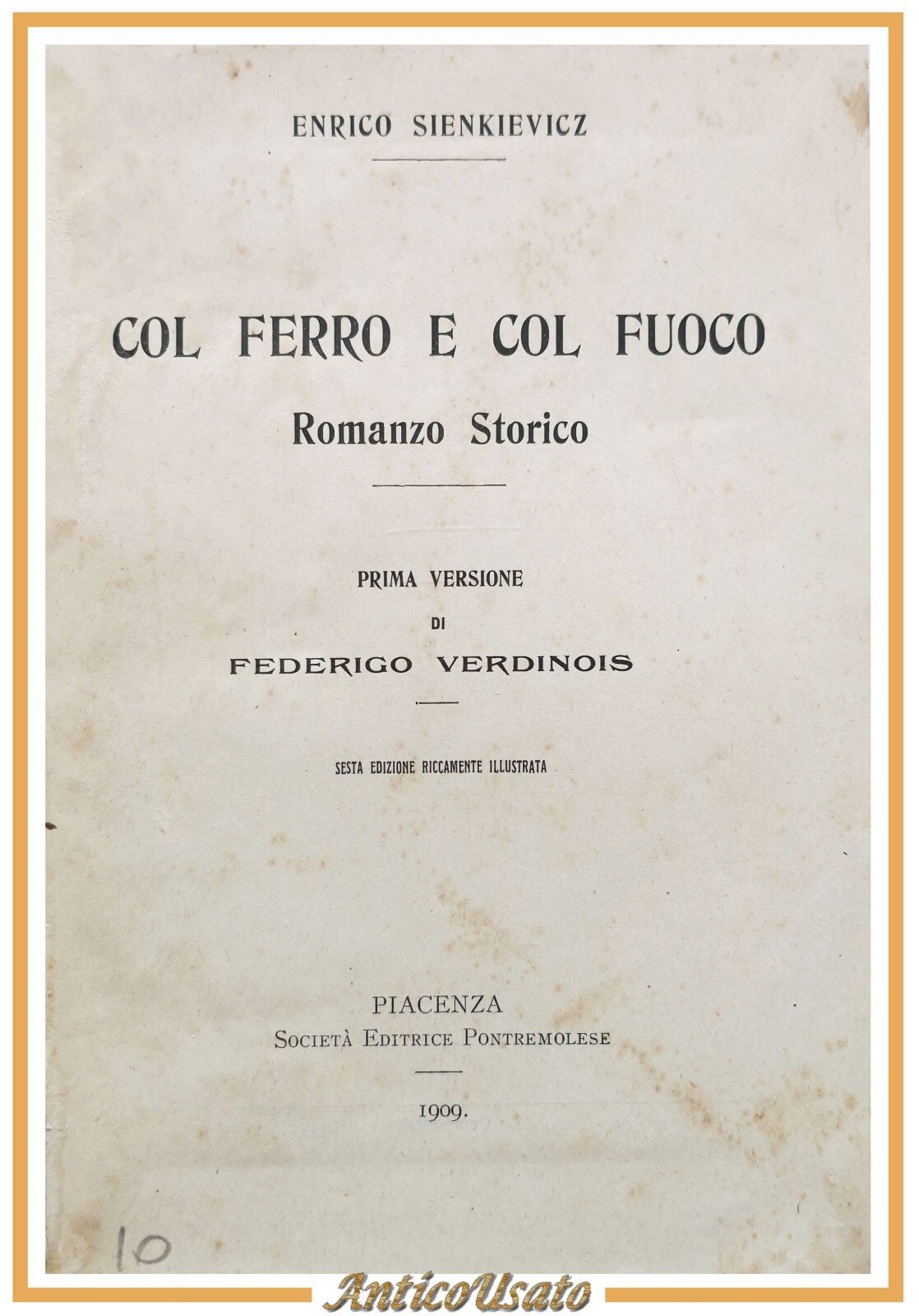 COL FERRO E COL FUOCO di Enrico Sienkievicz 1909 Editrice Pontremolese Libro