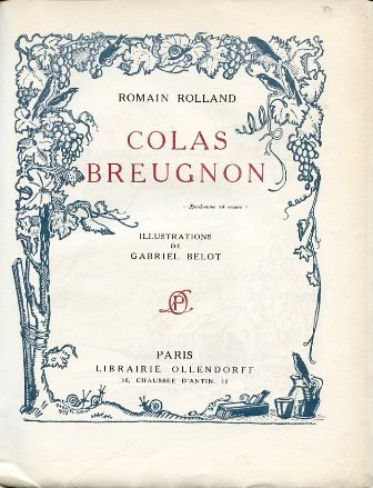 In-8°, pp. (8), 321, (9), brossura editoriale incamiciata con titolo stilizzato in rosso e nero entro bordura a tinta rossa con pampini, fiori, tralci vegetali, uccellini, ecc. Interamente illustrato n.t. e f.t. con centinaia di composizioni di Gabriel Belot (1882-1962) in monocromia. Ottimo esemplare intonso, a fogli chiusi e protetto da velina. Tiratura di 990 esemplari numerati (n° 618 dei 700 'sur papier vélin pur fil Lafuma'). Raffinata edizione di uno dei maggiori romanzi dello scrittore francese, insignito del Nobel per la letteratura nel 1915. Il romanzo, ambientato nella Borgogna del Seicento, narra di un artigiano che riesce a mantenere intatto il proprio amore per l'umanità a dispetto degli orrori della guerra; esso ispirò, nel 1938, l'omonima opera lirica di Dmitry Kabalevsky. Carteret, V, p. 71.