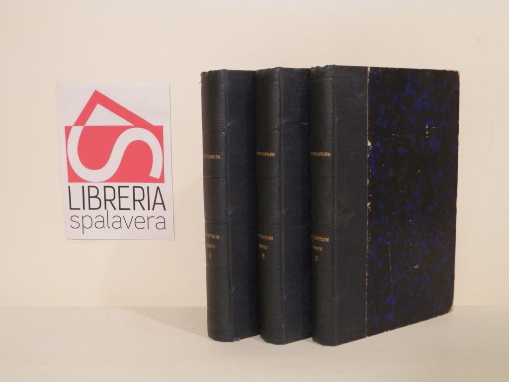 8°, cm 20, tre volumi di pp. 331, 335 e 266. Legature in mezza tela blu con titolo in oro al dorso. Minimi segni del tempo alle legature, uniforme ingiallitura delle carte, esemplari molto ben conservati. Prima parte completa dedicata ai personaggi celebri della famosa collezione di autografi del libraio e collezionista Edouard Dentu (1830-1884). Proveniente dalla biblioteca del libraio Leonardo Lapicirella ed ex libris inciso al contro piatto di Coletti, Perugia.. *** TUTTI I NOSTRI LIBRI SONO VISIBILI PREVIO CONTATTO MAIL O TELEFONO NELLA NUOVA SEDE DI MILANO: LIBRERIA COSMOPOLIS, VIA JOMMELLI, 22. ***