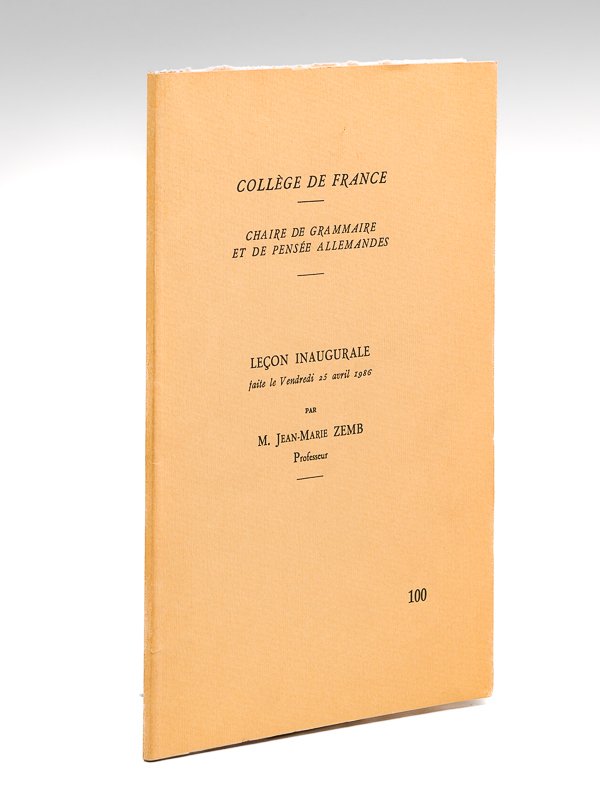 Collège de France. Chaire de Grammaire et de Pensée allemande. Leçon inaugurale faite le Vendredi 25 avril 1986 [ Edition originale ]
