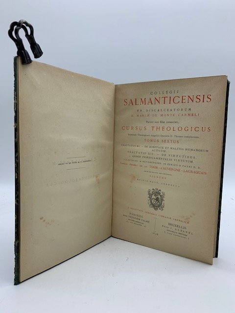In 8 (cm 16 x 23,5), pp. VII + (1 bianco) + 532. Legatura coeva in mezza tela con angoli. Testo su due colonne. Tomo sesto. Comprende: De bonitate et malitia humanorum actuum; De virtutibus. Arbor praedicamentalis virtutum.