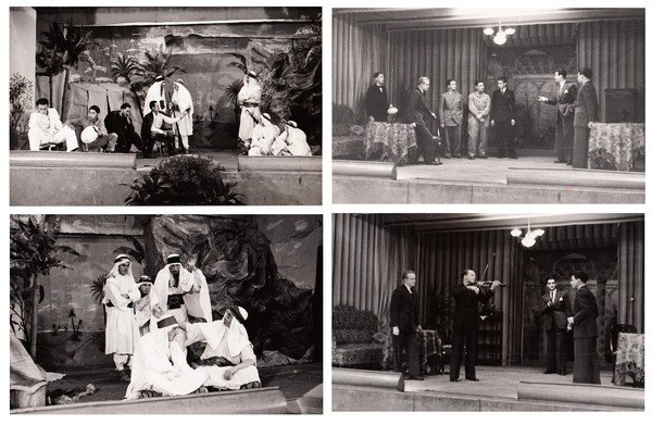 Collegio Mellerio Rosmini Domodossola. Serie cartoline fotografiche per le commedie La follia di Corelli e Voci portate dal vento rappresentate al Collegio il 25 febbraio 1940 ed il 6 gennaio 1941.