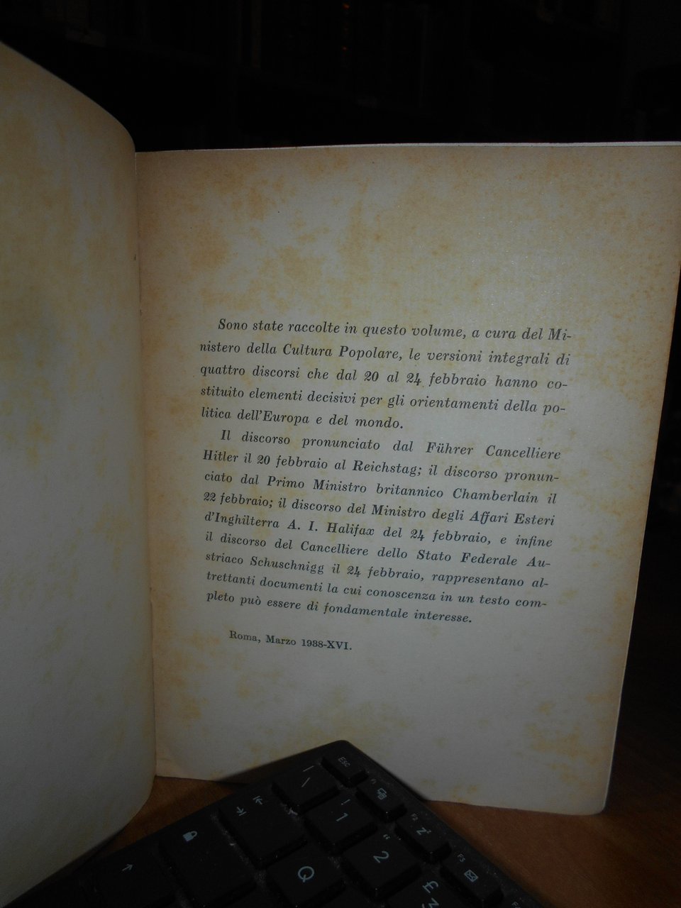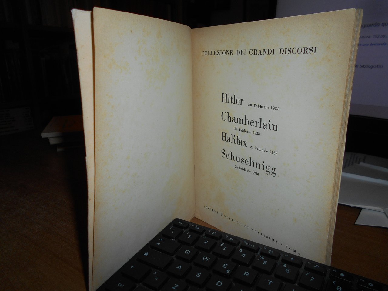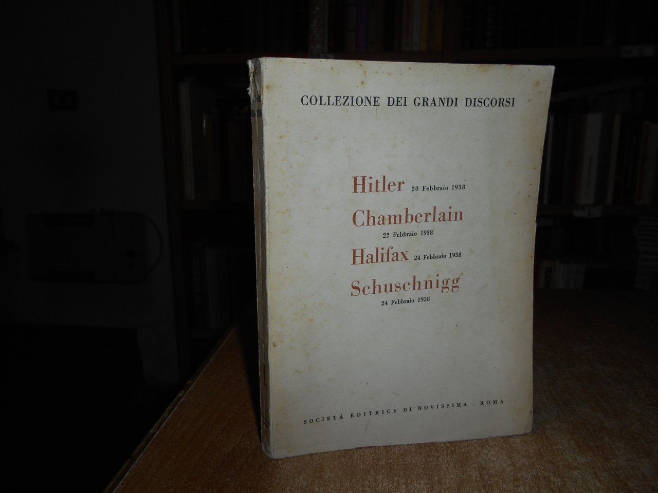 Collezione dei grandi discorsi. Hitler 20 febbraio 1938 - Chamberlain 22 febbraio 1938 - Halifax 24 febbraio 1938 - Schuschnigg 24 febbraio 1938.