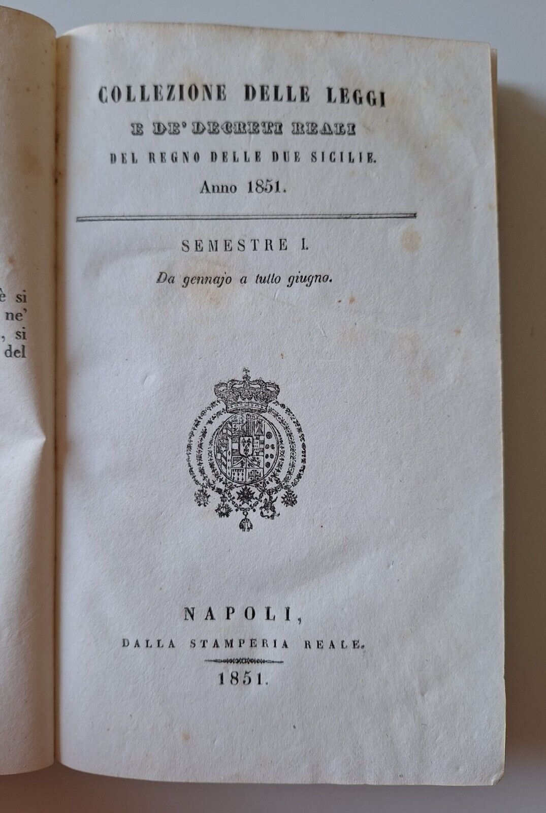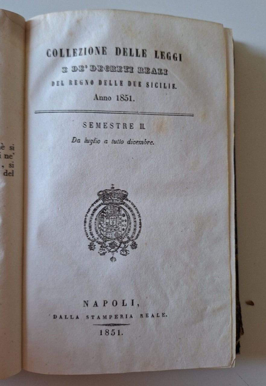 COLLEZIONE DELLE LEGGI E DE' DECRETI REALI DEL REGNO DELLE DUE SICILIE ANNO 1851