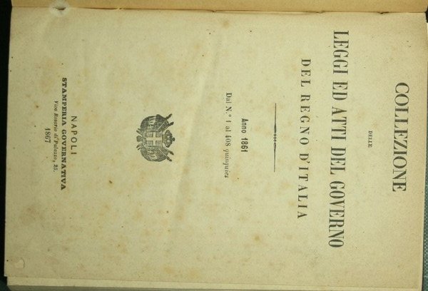 Collezione delle leggi ed atti del governo del Regno d'Italia. Anno 1861