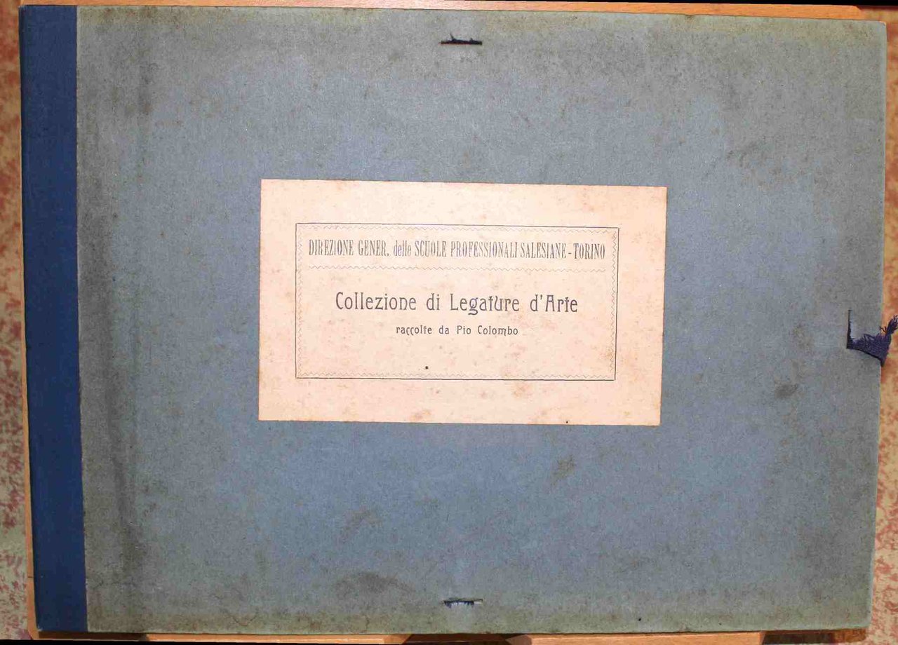 Cartella cm. 33 x 24,5. Fascicolo introduttivo di 8 pagine, una tavola descrittiva e 25 tavole con le immagini di legature antiche pregiate. Ingialliture e mancanza dei laccetti alla cartella, per il resto buono stato. Pubblicata a cura della Direzione generale delle scuole professionali salesiane di Torino.