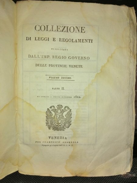 Collezione di leggi, e regolamenti pubblicati dall'Imp. Regio Governo delle Provincie Venete.Volume decimo. Parte II. Da luglio a dicembre 1822.