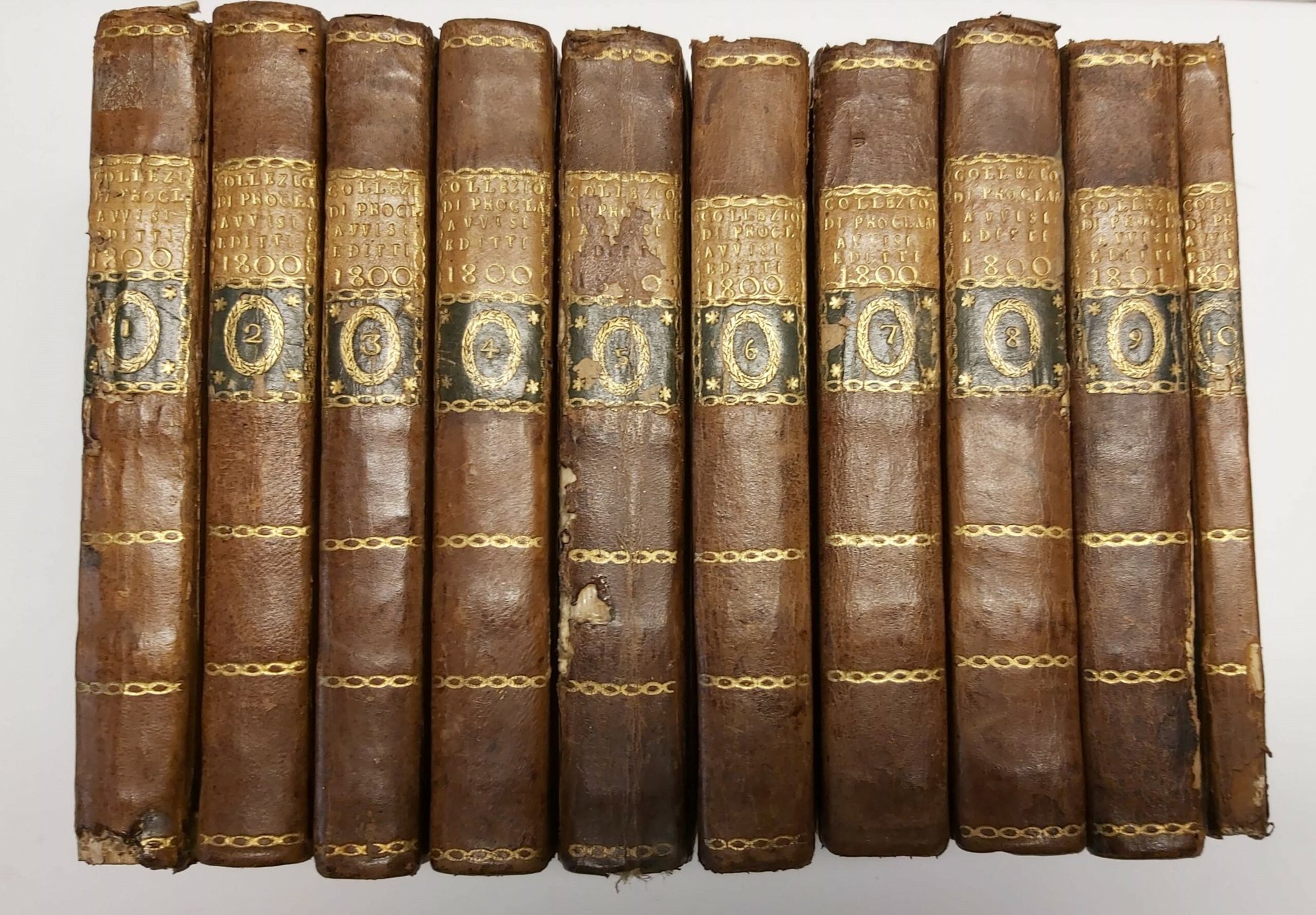 10 voll. in-8, leg. unif. m. pelle coeva con tass. ai d., tagli rossi. Dif. al primo vol. Bella raccolta. [397]