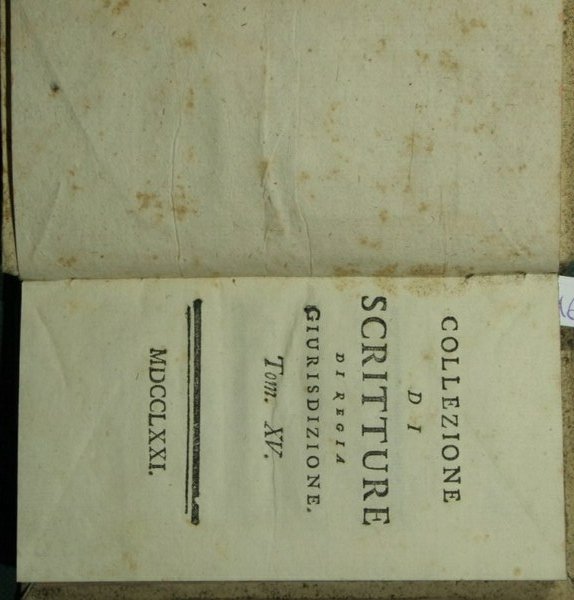 Collezione di scritture di regia giurisdizione. Vol. XV