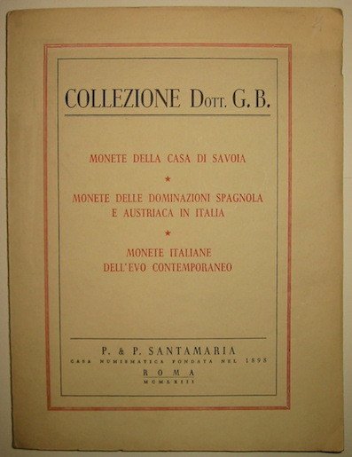 Collezione dott. G.B. Monete della Casa di Savoia. Monete delle dominazioni spagnola e austriaca in Italia. Monete italiane dell’evo contemporaneo