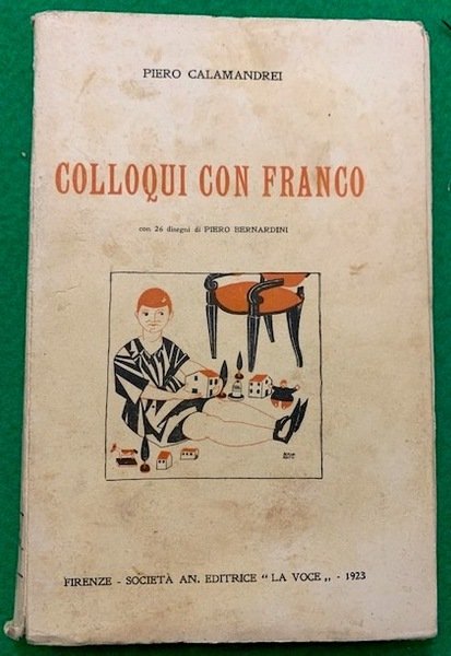 In 8°; 195, (1) pp. Brossura editoriale illustrata con illustrazione di Bernardini, in rosso e nero, al piatto anteriore, alcuni leggerissimi aloni al piatto anteriore e nel complesso esemplare in buone-ottime condizioni di conservazione. Vecchie note manoscritte a matita di commento all'opera, nell'ultima carta bianca. Piccolo timbretto di collocazione in collezione privata al recto del piatto posteriore. Prima rara edizione di quest'opera del grande avvocato, uomo politico e accademico italiano, tra i fondatori del Partito dAzione, Piero Calamandrei (Firenze, 21 aprile 1889 Firenze, 27 settembre 1956). L'opera raccoglie diversi scritti di Calamandrei, pubblicati tra il 1918 ed il 1922 e pubblicati su alcuni giornali per l'infanzia. L'opera è arrichhita dallle belle e divertenti illustrazioni di Piero Bernardini. Prima edizione, non comune ed in buone-ottime condizioni di conservazione.