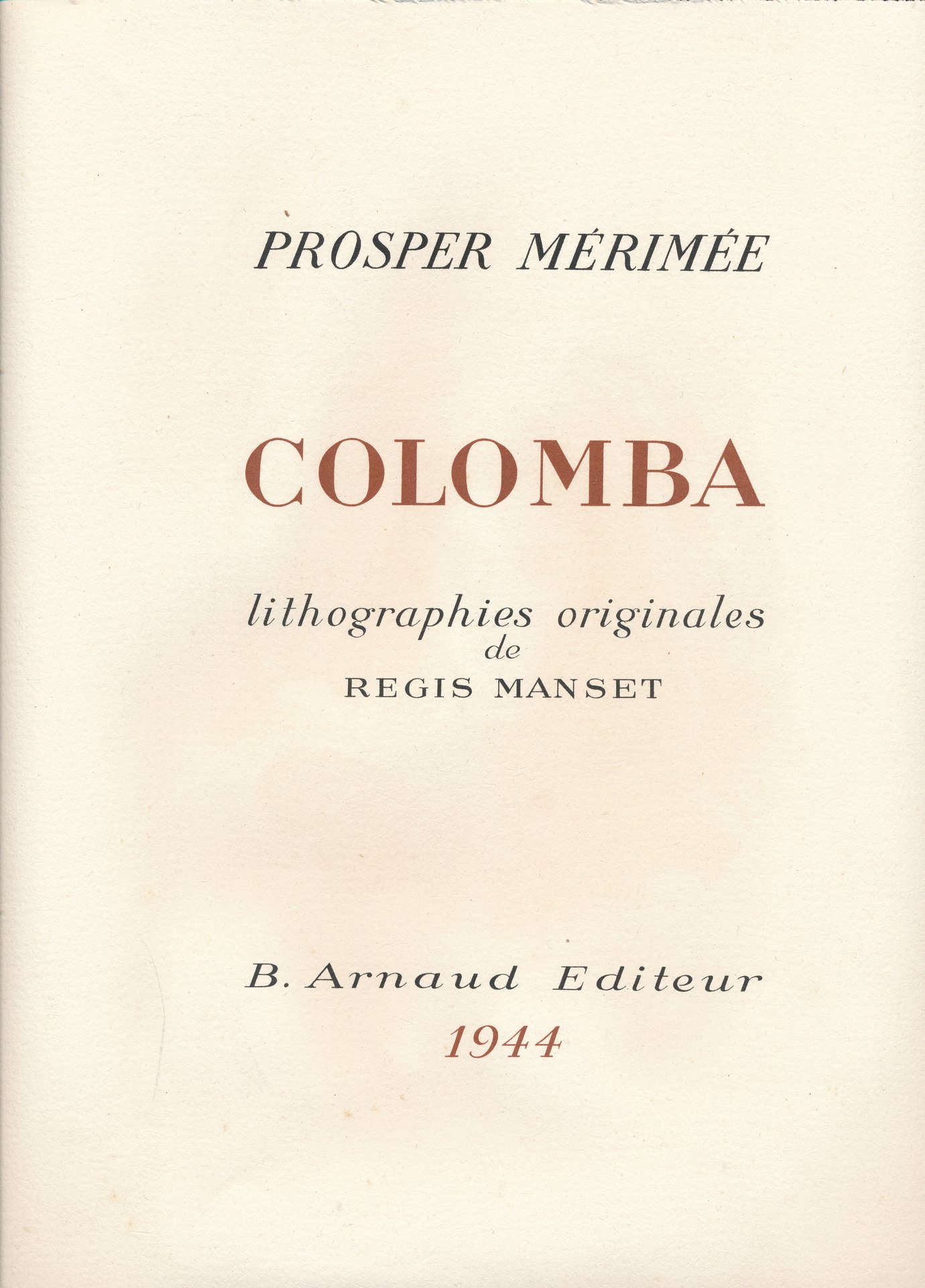 B. Arnaud éditeur 1944 En feuillet B. Arnaud éditeur 1944. In-4 en feuilles à feuilles sous chemise et emboitage. 263 pages. Illustrations en couleurs de Régis MANSET. Tirage limité numéroté à 750 exemplaires, celui-ci numéroté 734 sur Vélin Johannot. Très bon exemplaire.