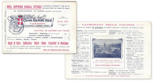 Colonia Balneare Italia Varazze. Anno XVI. Depliant turistico.