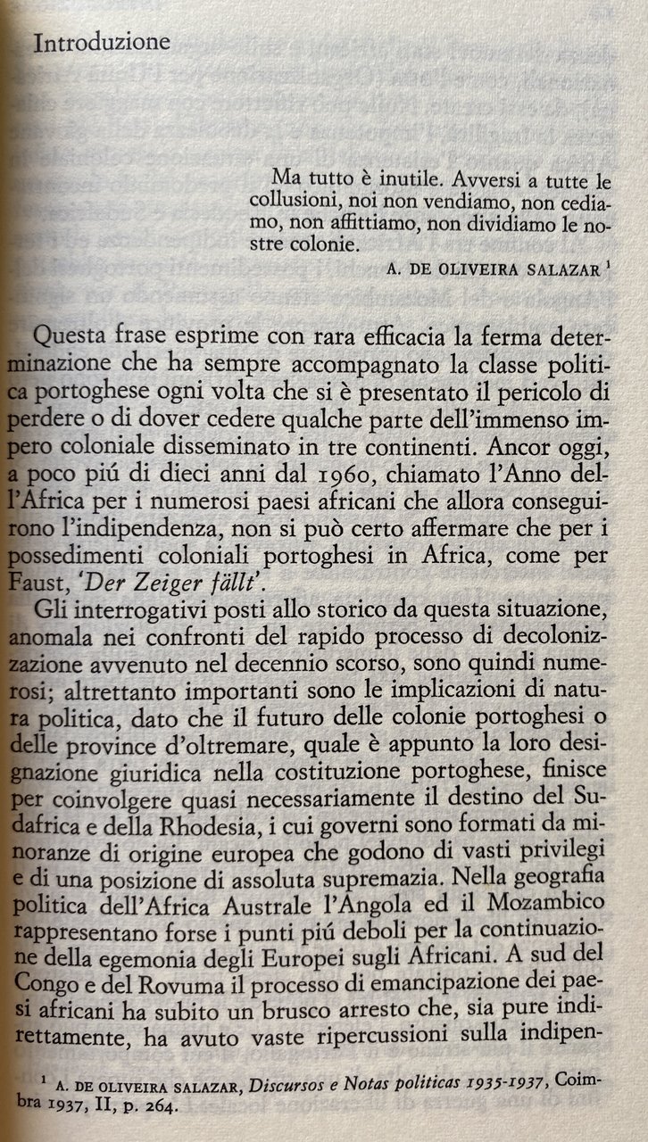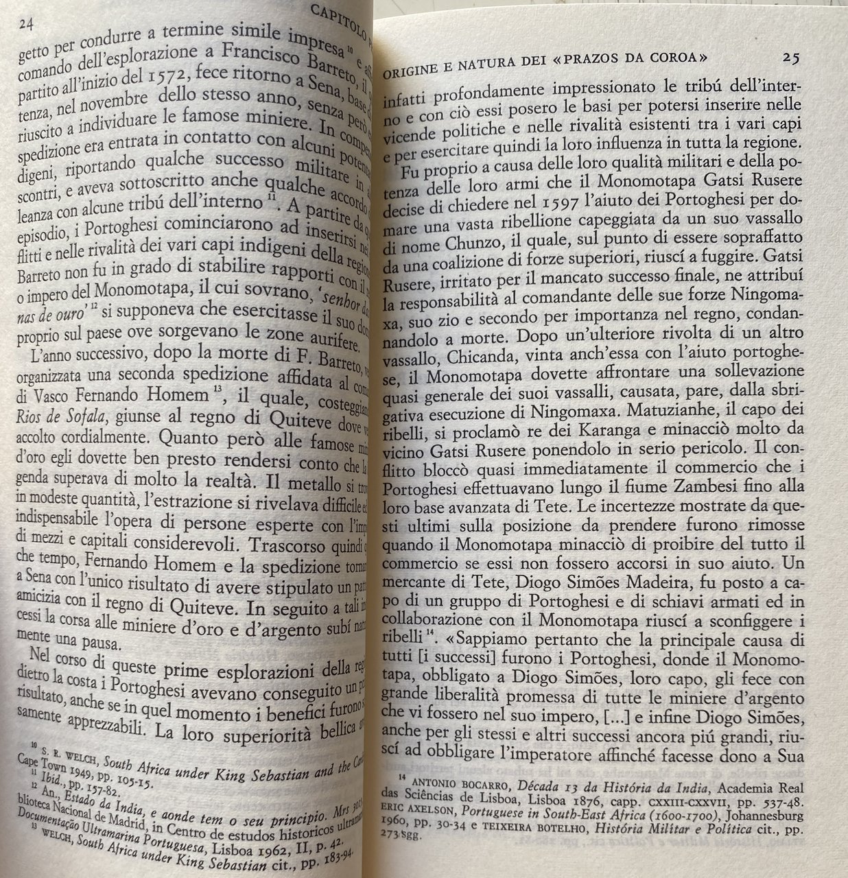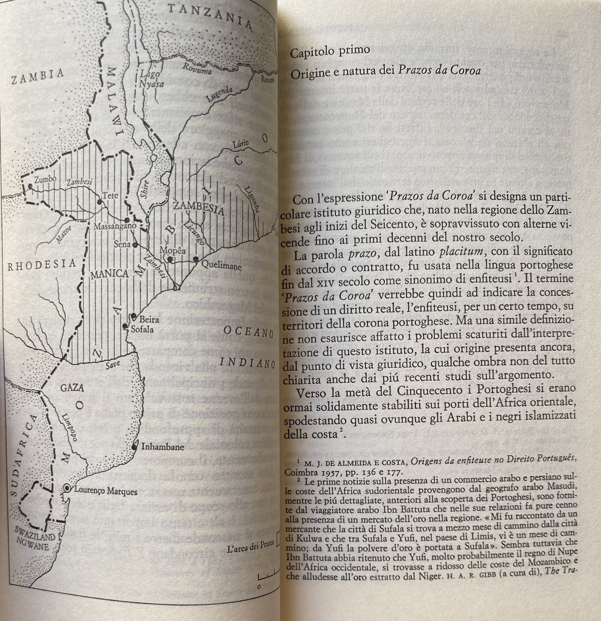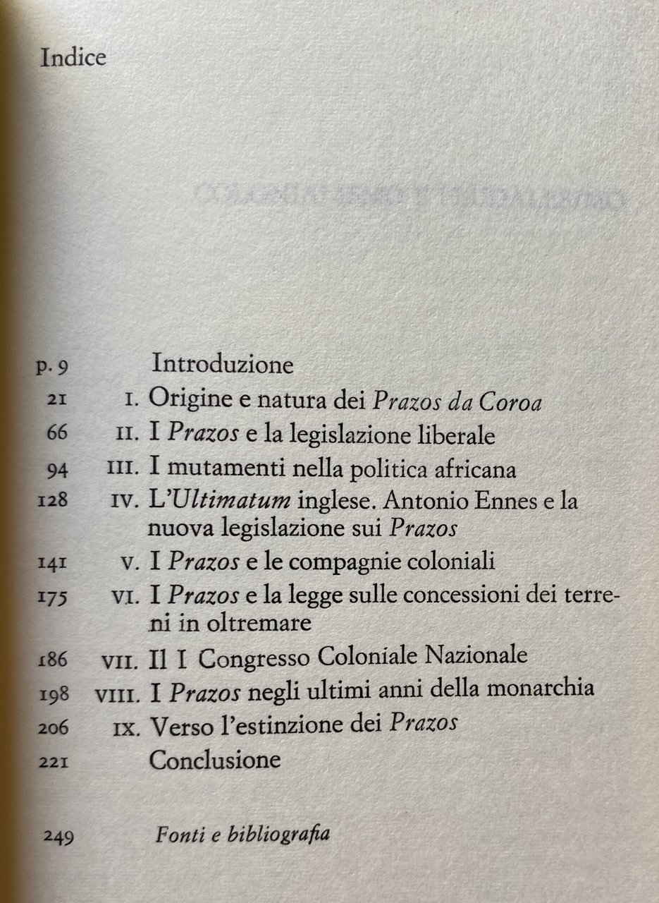 Il Portogallo è una fazenda, una bella fazenda, posseduta da una società. Come voi sapete vi sono società commerciali ed agricole. Questa di Lisbona è una società politica, che governa la tenuta chiamata Portogallo. La penetrante definizione di Eça de Queiroz può da sola costituire la prefazione a questo volume che tende ad individuare i metodi con i quali la società politica di Lisbona ha amministrato una parte del suo patrimonio coloniale: i Prazos da Coroa della Zambesia. Analizzando tale singolare enfiteusi afroeuropea e seguendone gli sviluppi vengono posti in luce i motivi dominanti della politica coloniale portoghese alla fine del secolo scorso: l'atteggiamento eminentemente speculativo con cui erano considerati i possedimenti d'oltremare; l'insieme dei privilegi concessi per valorizzare il Mozambico, e gli stretti legami dell'élite al potere con la finanza ed il capitalismo internazionali, soprattutto inglesi. Nel capitolo conclusivo, infine, il sistema politico emerso dall'indagine sui Prazos da Coroa viene posto a confronto con i tratti essenziali della struttura politico-economica del Portogallo e con l'insieme dei metodi adottati nel corso della sua lunga storia di potenza coloniale.