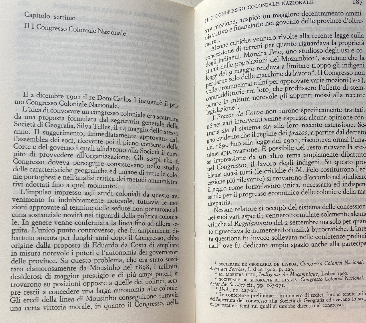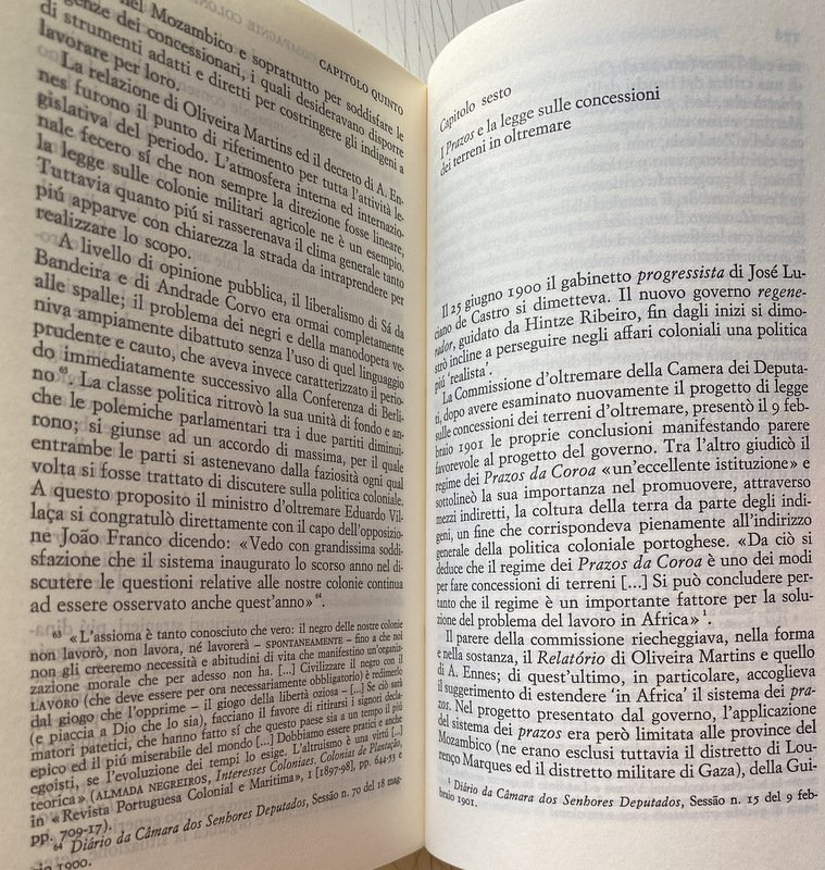 Soggetti: Storia dell'Africa, Portogallo, Colonialismo, Feudalesimo, Mozambico, Economia, Agricoltura, Colonie africane, Sfruttamento, Politica coloniale estera, Imperialismo, Europa, Possedimenti d'oltremare, Privilegi, Classi sociali, Caste, Potere, Finanza, Capitalismo, Schiavitù, Schiavi africani, Traffico, Mercato, Commercio, Manodopera, Inghilterra, Impero britannico, Spagna, Rivalità, Competizione, Potenze, Storia africana moderna, Spezie, Colonizzazione portoghese, XVII secolo, Amministrazione, Sovranità, Muzungos, Donas, Addebito, Mussoco, Imposte, Tasse, Contadini, Terra, Miniere, Oro, Avorio, Tessuti, Perline, India, Lisbona, Cuba, Zambézia, Quelimane, Maganja da Costa, Liberti, Liberazione, Emancipazione, Dipendenza, Diritto reale, Enfiteusi, Isole francesi, Oceano Indiano, La Réunion, Mauritius, Francia, Contratto, Capanne, Proprietà, Tribù, Zambesi, Tete, Nguni, António Enes, Ideologie politiche, Amministrazione coloniale, Xicundas, Sepoy, Semi oleosi, Arachidi, Sesamo, Copra, Olio alimentare, Saponi, Fabre & Filhos, Régie Ainé, Oost Afrikaansch Handelshuis, Companhia Africana de Lisboa, Piantagioni, Augusto de Castilho, Raccolta, Cocco, Canna da zucchero, Codice, Lavoro rurale, 1875, Indigeni, Compagnie, Monarchia, Affittuario, Réis, Decreti, Prazeiros, Occupazione, Terre affittate, Affitto, Autorità coloniale, Sublocazione, Vendita, Dona Theodora, Mozungos, Sorensen, Aggressione imperialista, Saggistica, Storiografia, Saggi storici, Anna Loforte, Mario Joaquim Azevedo, João Paulo Borges Coelho, Moçambique, Creola, Allen F. Isaacman, Illuminismo, Elisio Martins, Kazembe, Massangano, Mello de Castro, Tonga, Villaggi, Terreni, Corona, Governatore, Chewa, Legislazione, Liberalismo, Concessioni, Minoranze, Congresso, Estinzione, Studi culturali, Bibliografia, Fonti, Riferimento, Collezionismo, Libri rari Vintage fuori catalogo, 1960, Indipendenza, Sudafrica, Rhodesia, Angola, OUA, Guinea, Bianchi, Suprematismo, Apartheid, Razzismo, Neri, Guerriglia, Rivoluzione, Libertà, Alexandre Herculano, De Oliveira Martins, Wilson Green, Marcelo Caetano, Colonisaçao, Seicento, Settecento, Henrique De Gama Barros, Indie, Alexandre Lobato, Barreto, Vasco Fernando Homem, Quiteve, Eldorado, Islam, Arabi, Enfiteuse, Direito, De Almeida e Costa, Zambesia, Diplomazia, Brasile, Rendeiro, Arrendatarios, Paiva Manso, Dom Pedro, Gungunhana, Makololo, Mashona, Barros Gomes, Portaria, Germania, Olanda, Paesi Bassi, Belgio, Italia, Società geografica, Mapa cor de rosa, Serpa Pinto, Scramble, Eduardo Villaça, Affari, Negocios, Camara, Documenti, Diario, Relazioni, Gonçalves Pereira, Ronald Chilcote, Abreu, Fernand Braudel, Jaime Cortesao, Godinho, Charles Verlinden, Botelho, Albuquerque, Fuschini, Gilberto Freyre, Gaza, History, Portugal, Colonialism, Feudalism, Mozambique, Economy, Agriculture, African colonies, Exploitation, Foreign colonial policy, Imperialism, Europe, Overseas possessions, Privileges, Social classes, Castes, Power, Finance, Capitalism, Slavery, African slaves, Traffic, Market, Commerce, Labor, England, British empire, Spain, Rivalry, Competition, Powers, Modern African history, Spices, Portuguese colonization, 17th century, Administration, Sovereignty, Charge, Taxes, Peasants, Land, Mines, Gold, Ivory, Fabrics, Beads, Lisbon, Freedmen, Liberation, Emancipation, Dependence, Royal right, Emphyteusis, French Islands, Indian Ocean, France, Contract, Huts, Property, Tribes, Zambezi, Political ideologies, Colonial administration, Oilseeds, Peanuts, Sesame, Edible oil, Soaps, Plantations, Harvest, Coconut, Sugarcane, Code, Rural work, Indigenous, Companies, Monarchy, Tenant, Decrees, Prazeiros, Occupation, Leased lands, Rent, Colonial authority, Subleasing, Sale, Imperialist aggression, Non-fiction, Historiography, Historical essays, Creole, Enlightenment, Villages, Crown, Governor, Legislation, Liberalism, Concessions, Minorities, Congress, Extinction, Cultural studies, Bibliography, Sources, Reference, Collecting, Rare books out of print, Independence, South Africa, Whites, Suprematism, Racism, Blacks, Guerrilla, Revolution, Freedom, Seventeenth, Eighteenth century, Indies, Arabs, Diplomacy, Brazil, Germany, Holland, Netherlands, Belgium, Italy, Geographical society, Documents, Diary, Relationships, Vogel De Moura, Eça De Queiroz, Arriaga Basil Davidson Chagas, Micro-nazionalismo, Indipendenza, Mozambique, Afrique, Moçambique, colonização portuguesa, História, Augusto de Castilho, Companhia Africana de Lisboa, Cuba, Comércio, Agricultura, Código de Trabalho Rural, Fase feudal, Genealogia