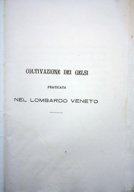 Coltivazione dei Gelsi praticata nel Lombardo Veneto. Metodo usato per la coltivazione del Gelso nel Lombardo Veneto e più specialmente nelle Province di Brescia, Bergamo, Mantova nella Brianza, sul Veronese e Vicentino, ove il suolo è più ricco di tal pianta, ed ove la coltivazione della medesima è più diligentata e quindi più proficua.