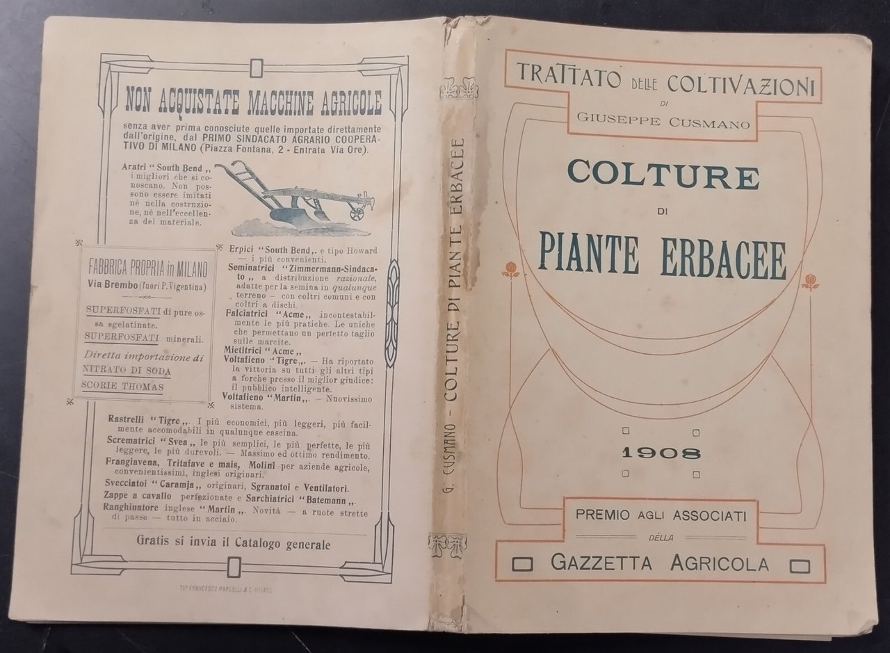 COLTURE DI PIANTE ERBACEE TRATTATO DELLE COLTIVAZIONI di Giuseppe Cusmano.
