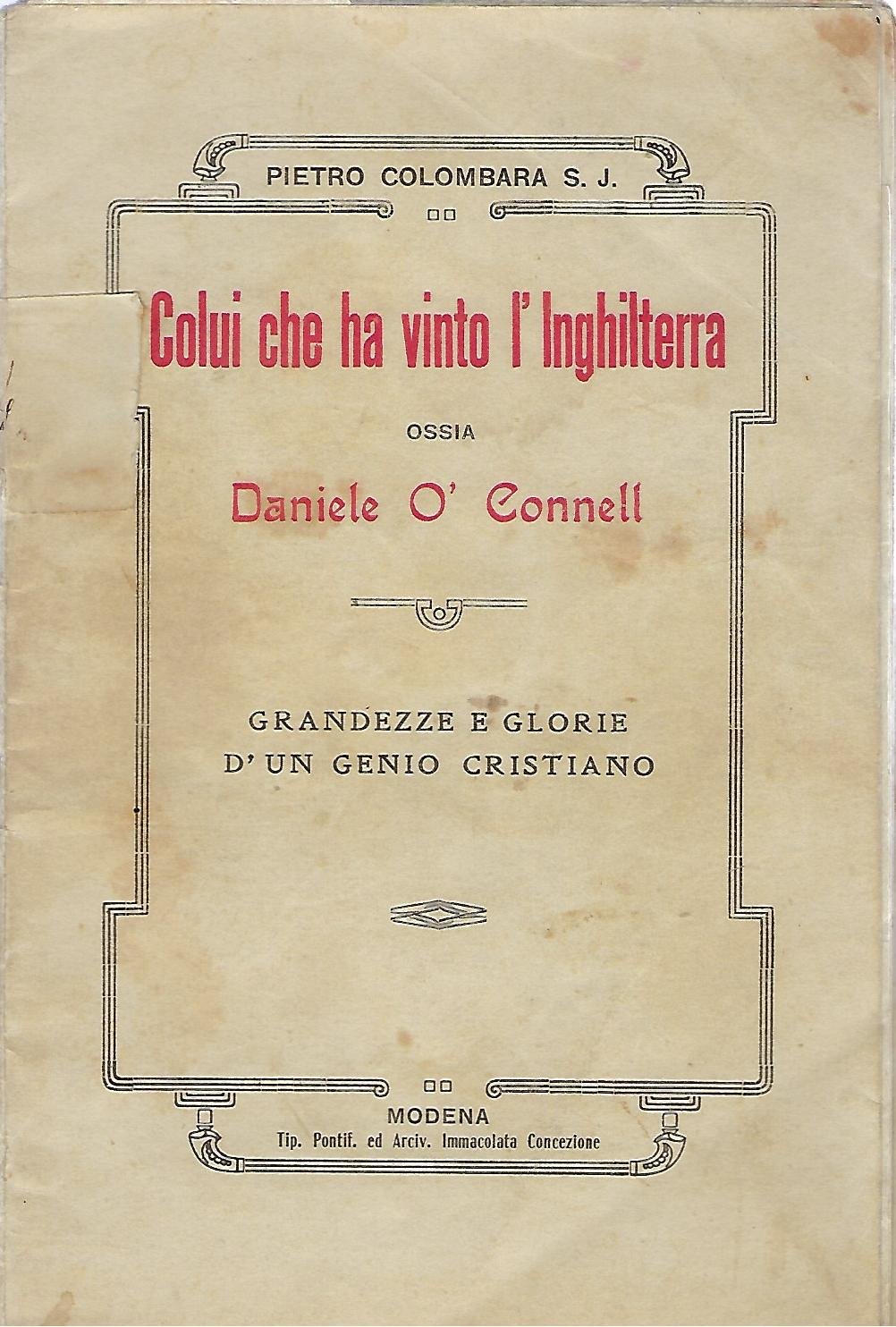 "Colui che ha vinto l'Inghilterra" "ossia Daniele O' Connell" "Grandezze e glorie d'un genio cristiano"