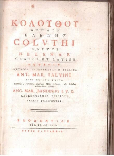 Coluthi raptus Helenae graece et latine accedit