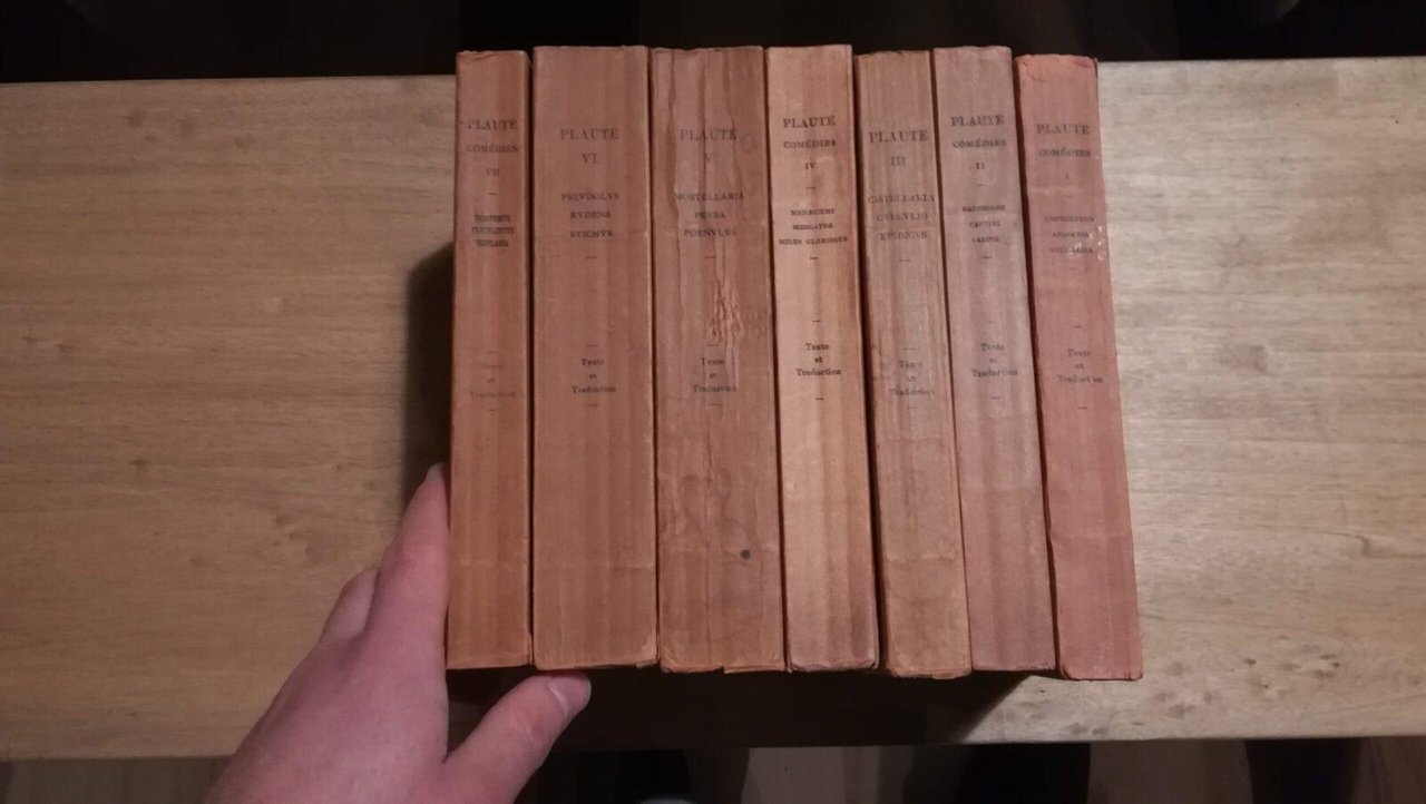 Plaute - Comиdies I - VII Les Belles Lettres - 1935,1964 Libri in ottime condizioni, piccola manzanca alla quarta di copertina del vol I, macchioline copertina vol II, riparazione con nastro legatoriale angolo basso interno copertina, bruniti soprattutto ai dorsi. Non esitate a contattarci per altre foto o richieste. Saremo lieti di soddisfare ogni vostra esigenza.
