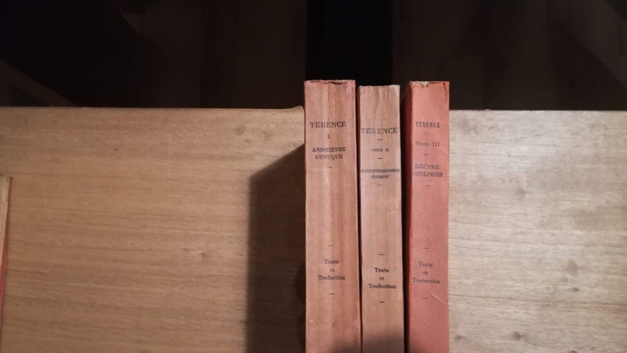 Tиrence - Comиdies. Tre volumi. Belles Lettres - 1961,1964 Vol I - Andrienne, Eunuquee Vol II - Heautontimoroumenos, Phormion Vol III - Hиicre, Adelphes Libri in ottime condizioni, pagine ancora da tagliare, dorsi vol I e II bruniti, piccola mancanza angolo alto dorso volume III. Non esitate a contattarci per altre foto o richieste. Saremo lieti di soddisfare ogni vostra esigenza.