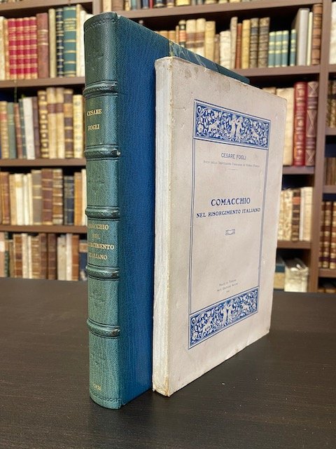 In-8° (cm. 22,5), brossura editoriale a stampa con titolo in blu al piatto anteriore entro eleganti cornici ornate (lievi tracce d'uso); pp. 170 [2] in ottimo stato; con alcuni ritratti a piena pagina nel testo. Edizione molto rara di questo volumetto in cui il Fogli, illustrando gli avvenimenti del 1848, riconosce a Comacchio il prestigio di essere stata la prima fra le città pontificie a ribellarsi agli austriaci e approfondisce con documenti inediti le vicende dei garibaldini fratelli Bonnet. Antica firma di possesso al frontespizio e nota a margine della prefazione. Ottimo esemplare, conservato in bella custodia d'amatore in mezza pelle blu ad angoli con dorso a nervi e titolo in oro ai comparti. (NR1)