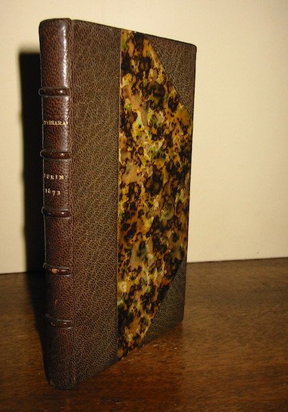 12mo (cm. 15), 108 pp., 1 c.nn., 80 pp., 1 c.nn. Grande stemma araldico in xilografia al frontespizio. Legatura ‘800 in mz. marocchino bruno con angoli. Nervi e titolo impresso in oro al ds. Pallidi aloni diffusi. Buon esemplare. Rarissimo. Non in Cockle. Presente, secondo ICCU, in una sola biblioteca italiana. Provenienza: collezione ‘Lord Cottesloe’.