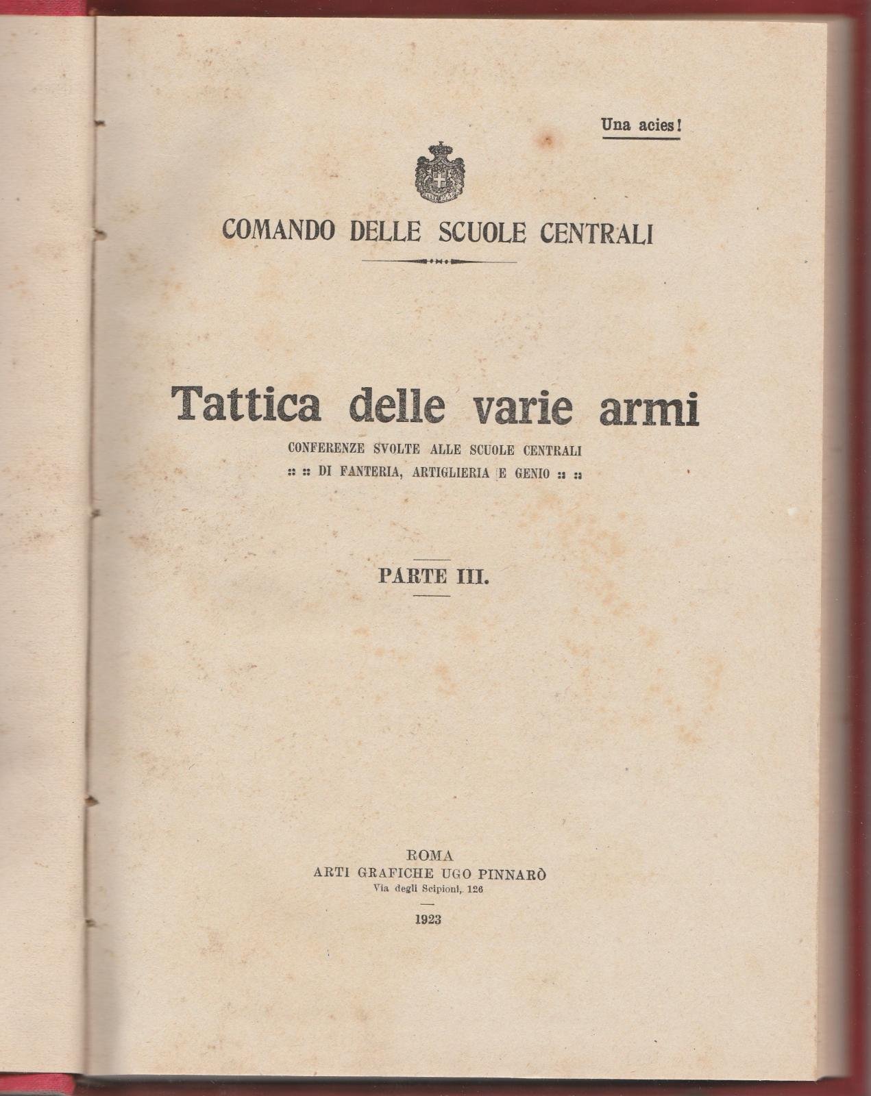 Comando Delle Scuole Centrali Tattica Delle Varie Armi Parte III Roma 1923-L4239