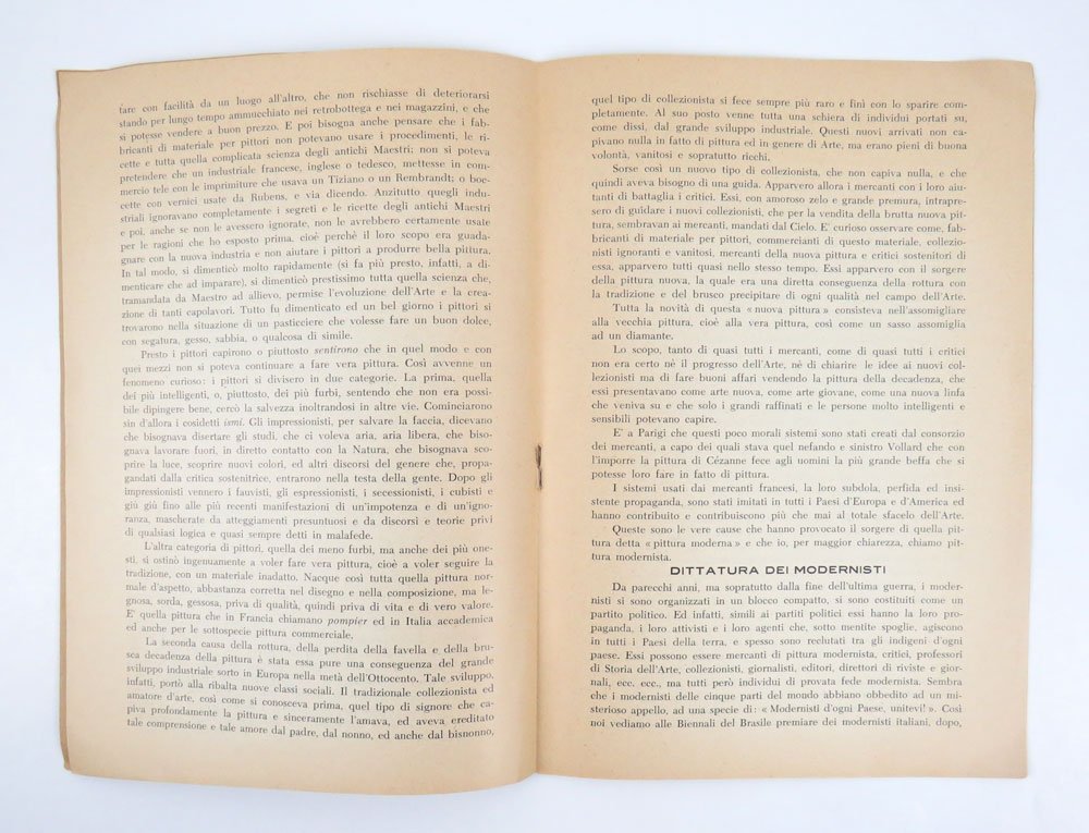 Come e perché é [sic] nata la pittura modernista — Dittatura dei modernisti — (Conferenza tenuta a Torino, al palazzo Carignano il 23 Aprile 1958)