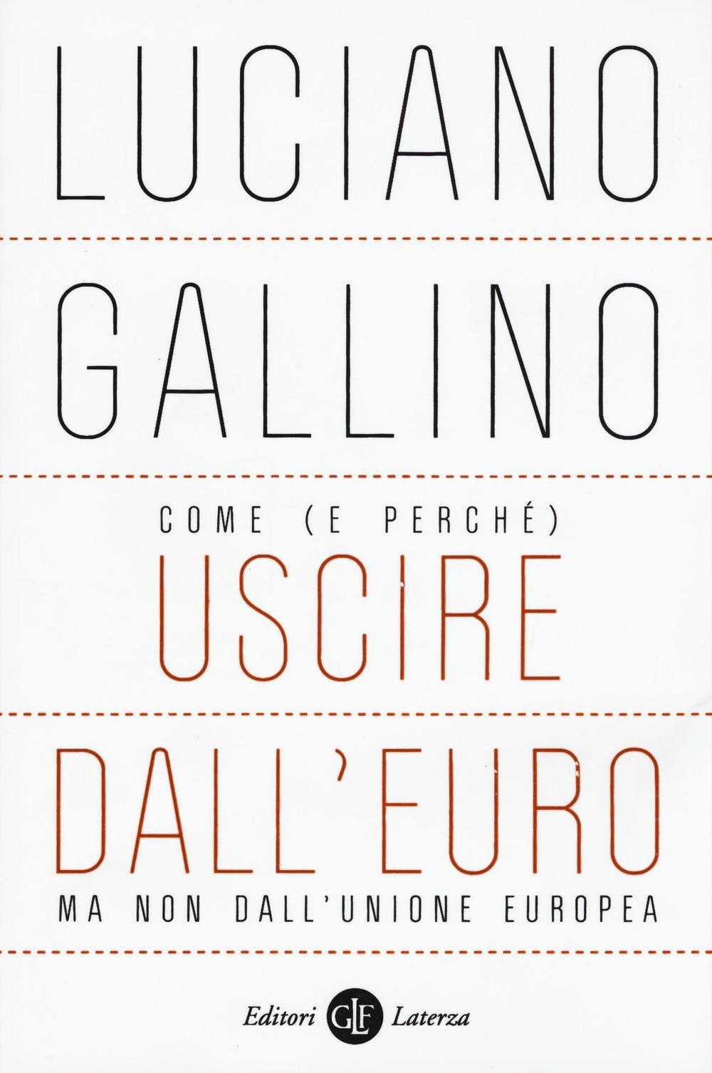 Luciano Gallino non era un euroscettico. Considerava l'Unione Europea la più grande invenzione politica, civile ed economica degli ultimi due secoli. Ma vedeva con sofferenza questa Europa ridotta al servizio delle potenti lobbies della finanza e delle banche, portavoce delle maggiori élites europee a scapito dei diritti fondamentali della grande maggioranza dei cittadini e, cosa ancor più grave, culla di un'inarrestabile redistribuzione del reddito e della ricchezza dal basso verso l'alto, con la conseguente crescita delle disuguaglianze. Era sua convinzione che le politiche economiche e sociali dettate dai mercati finanziari hanno portato gli Stati a una cessione di sovranità in materia di spesa per protezione sociale, scuola, università, quota salari sul Pil, contratti di lavoro e molto altro ancora. L'euro si è così trasformato nello strumento della vittoria del neo-liberismo su ogni altra corrente di pensiero. A causa di un'errata interpretazione della recessione, il peso esorbitante del sistema finanziario non ha avuto un freno, le relazioni industriali sono arretrate, i sindacati sono stati ridimensionati, la mancanza di occupazione mostra il profilo di una catastrofe sociale. Prima che gli effetti del dissennato 'Patto fiscale' facciano scendere una cappa soffocante di miseria sulle prossime generazioni, Luciano Gallino elenca i modi concreti per uscire dall'euro, rimanendo l'Italia paese membro dell'Unione europea.