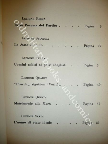 DESCRIZIONE: Baldini & Castoldi Milano 1959, br. ed. ill. a col con alette, pp. 162 con ill. b/n n.t. in 16°. Un cocktail di lezioni, aneddoti di un umorismo che ad un tratto esplodee mette in "burletta" l'operato del Partito Comunista. CONDIZIONI: Ottime, lievi pieghette alla sovracc. PESO / WEIGHT: 200 gr. without package