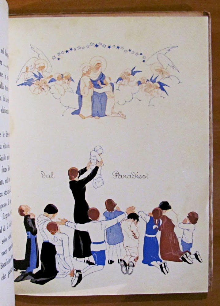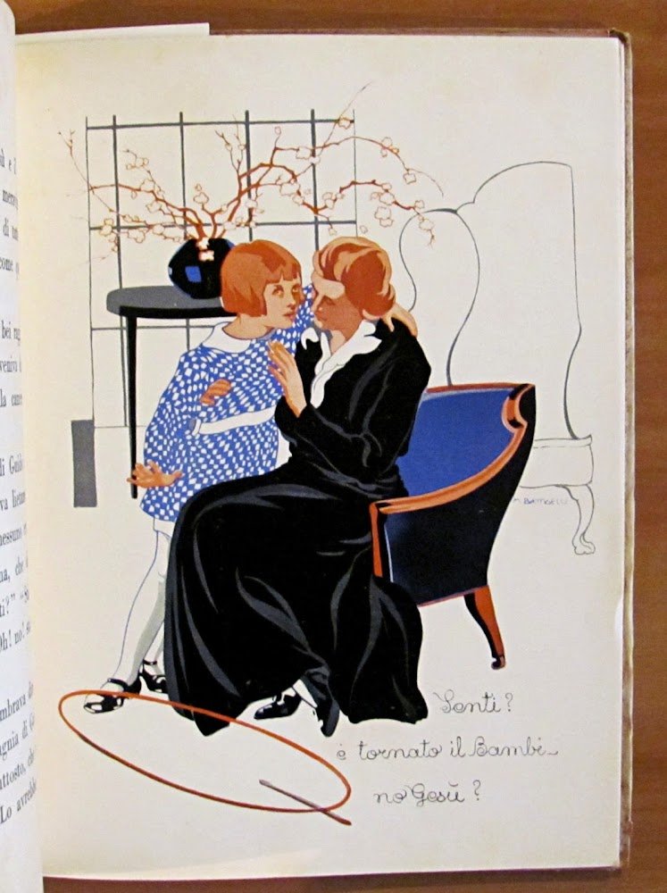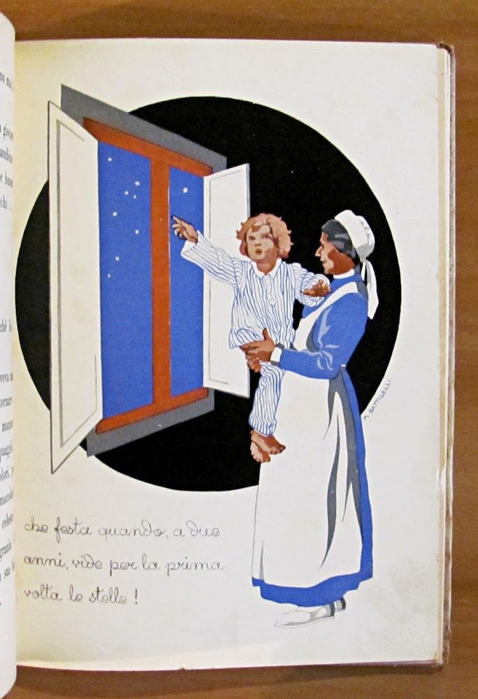 4 tavole a colori f.t. e illustrazioni in b/n di Marina Battigelli. Libr. Ed. Fiorentina - Firenze, 1934. Cartonato editoriale con dorso in tela. Minime spellature ai margini esterni della copertina, piccola imperfezione alla cuffia superiore del dorso macchiolina alla retrocopertina. Peraltro interno in Ottimo Stato. 17,5x23,5; pp.36. RARO e in BUONISSIMO STATO , Molto buono (Very Good)