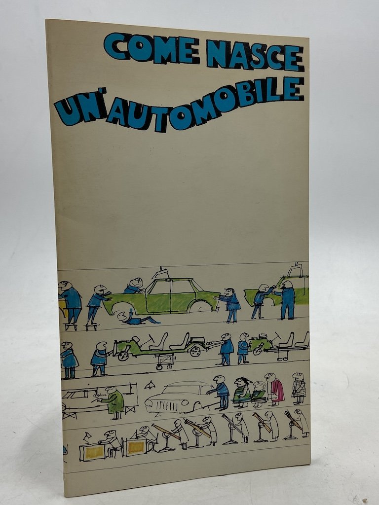 Brossura, cm12x20, pp 71 (1) interamente illustrate in nero da disegni e fotografie delle catene di montaggio e delle fasi di lavorazione in FIAT.