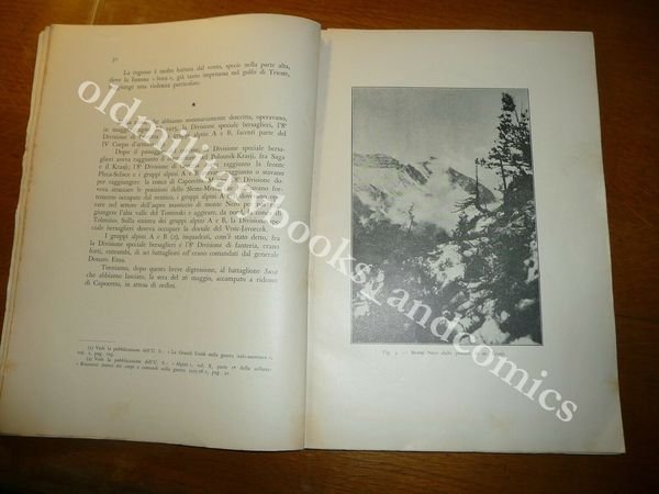 DESCRIZIONE: Ed. Uff. Storico, Corpo di Stato Maggiore, Ministero della Guerra, Roma, 1932-X. In 8°, br. edit. ill. a col., pp. 116 con 22 foto e ill. b/n n.t. e 6 schizzi e cartine b/n f.t. alcune più volte ripiegate. Volume N. 1 della collana "Monografie storiche sulla guerra del 1915-1918". Interessanti e bellissimi volumetti monografici stampati su carta di qualità, con splendide fotografie e illustrazioni. Copertina illustrata di Virgilio Retrosi. Indice: Premessa; I - Vigilia di guerra; II - Si passa il confine; III - Il battesimo del fuoco; IV - Il primo colpo di maglio alle difese di Monte Nero; V - La scalata dei "trentuno"; VI - In attesa della conquista di Monte Nero; VII - La giornata del 16 Giugno 1915; Conclusione. CONDIZIONI: Buone, modesti danni alla costola e piccolo strappetto alla cop. PESO / WEIGHT: 300 gr. without package