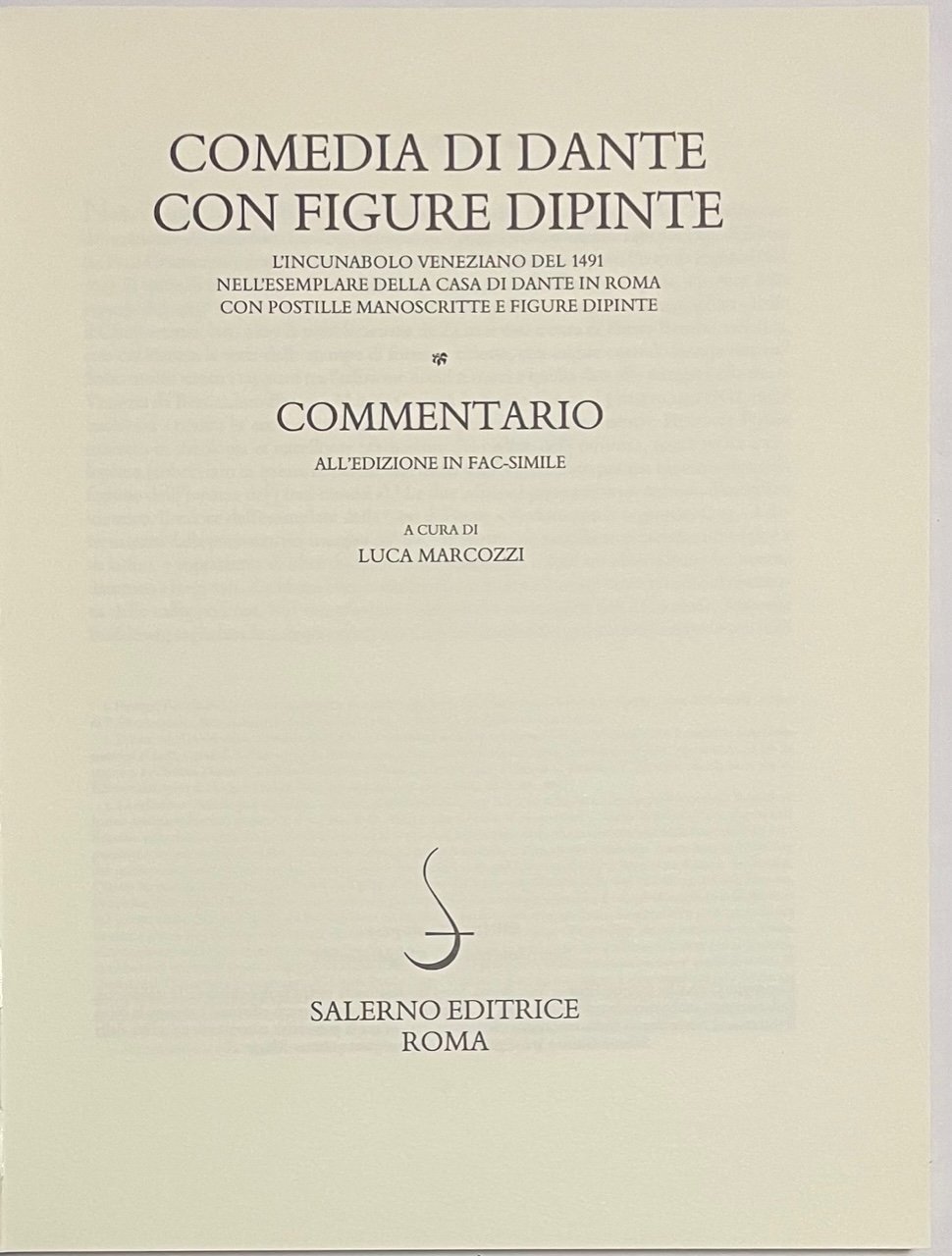 Comedia di Dante con figure dipinte. Commentario al facsimile. Salerno Editrice, Roma, 2015. In brossura con sovracoperta. Edizione illustrata. Pagine 130, formato 21x27,5. Condizioni di nuovo. 500g.