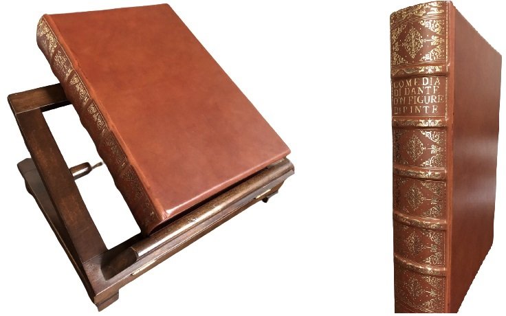 ‘Comedia’ di Dante con figure dipinte. Roma, Museo Casa di Dante, C 23. Salerno Editrice, Roma , 2014. Riproduzione in facsimile del poema dantesco nella versione dell’incunabolo veneziano del 1491, arricchito di un fitto apparato di glosse manoscritte, a corredo delle note di Cristoforo Landino, e di uno straordinario commento figurativo in tutti gli spazi bianchi delle oltre 400 pagine. Formato 23x34 cm. Pagine 650 (325 carte). Commentario a cura di Luca Marcozzi, rilegato, pagine132, con 16 tavole fuori testo a colori. Senza cofanetto di custodia. Tiratura limitata e numerata di 499 copie. Condizioni ottime.