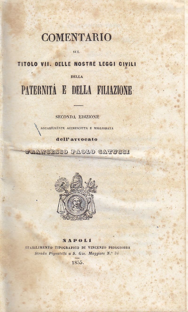 COMENTARIO SUL TITOLO VII DELLE NOSTRE LEGGI CIVILI DELLA PATERNITA’ E DELLA FILIAZIONE di Francesco Paolo Catucci.