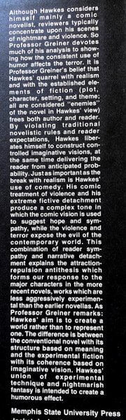 COMIC TERROR: THE NOVELS OF JOHN HAWKES