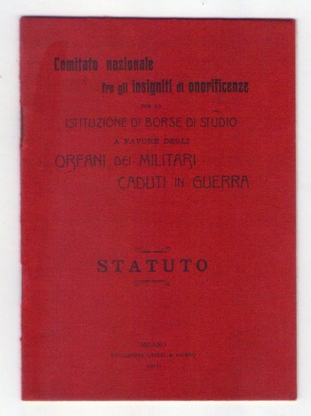 Comitato nazionale fra gli insigniti di onorificenze per la istituzione di borse di studio a favore degli orfani dei militari caduti in guerra. Statuto.