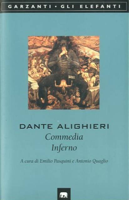 1 kit (1 v., 1 CD rom) ; in contenitore ; 20 x 13 x 4,5 cm. Gli elefanti. A cura di Emilio Pasquini e Antonio Quaglio. Pubbl. con CD "Dante Inferno". Nel libro: la prima cantica della "Divina Commedia" con il commento e le note di Emilio Pasquini e Antonio Quaglio. Nel CD: i passi più noti dell'"Inferno" interpretati da Sandro Lombardi e David Riondino, un viaggio di oltre un'ora nelle atmosfere e nei paesaggi danteschi. Brossura editoriale, copertina in cartoncino flessibile plastificato opaco, illustrata a colori. Libro e CD contenuti in un cofanetto di cartone illustrato a colori. Codice libreria 3767.