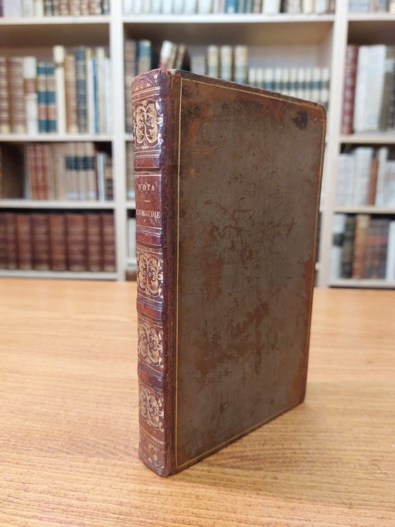 In-16° (cm. 17), legatura coeva in piena pelle, dorso a nervi con titolo, filetti e decorazioni in oro, filetti in oro che inquadrano i piatti, tagli dorati, risguardi marmorizzati; pp. XXIV 475 [3] in buono stato, alcune fioriture. Antica nota di appartenenza manoscritta alla prima carta bianca. Etichetta libraria ottocentesca applicata al contropiatto. Esemplare molto buono. (SD4<span style="font-size: 10pt;">)</span>