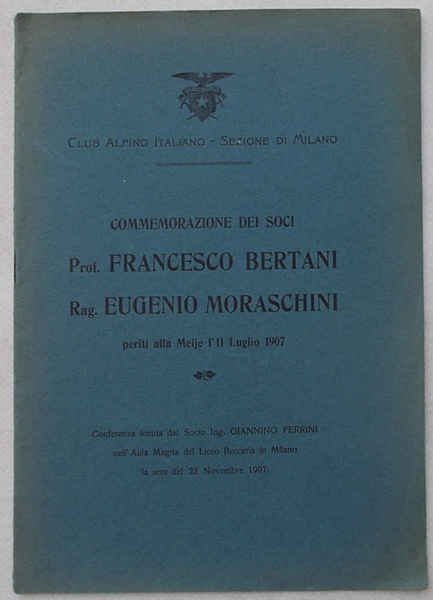 Commemorazione dei soci Prof. Francesco Bertani Rag. Eufenio Moraschini periti alla Meije l'11 Luglio 1907.