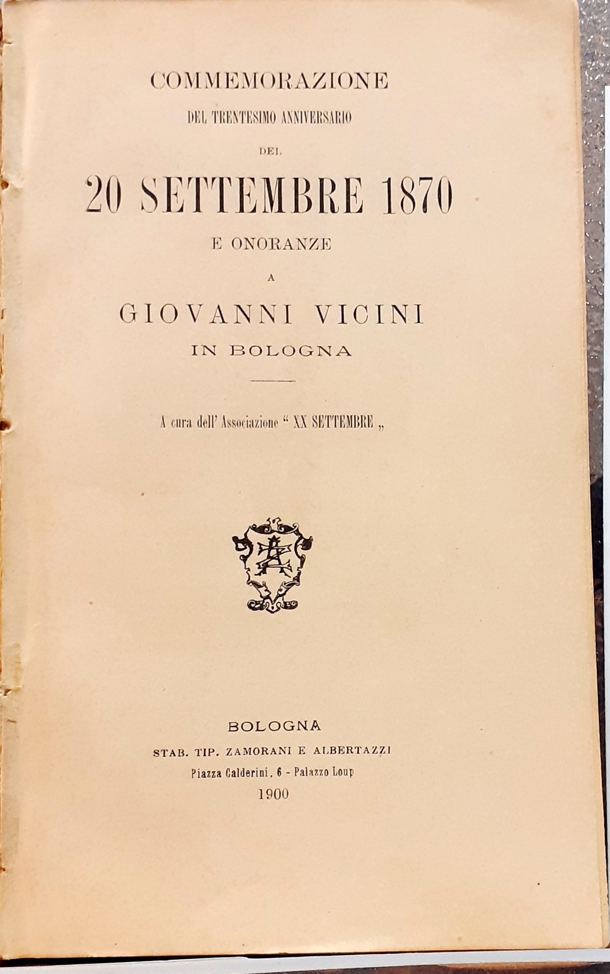COMMEMORAZIONE DEL TRENTESIMO ANNIVERSARIO DEL 20 SETTEMBRE 1870 E ONORANZE A GIOVANNI VICINI IN BOLOGNA.