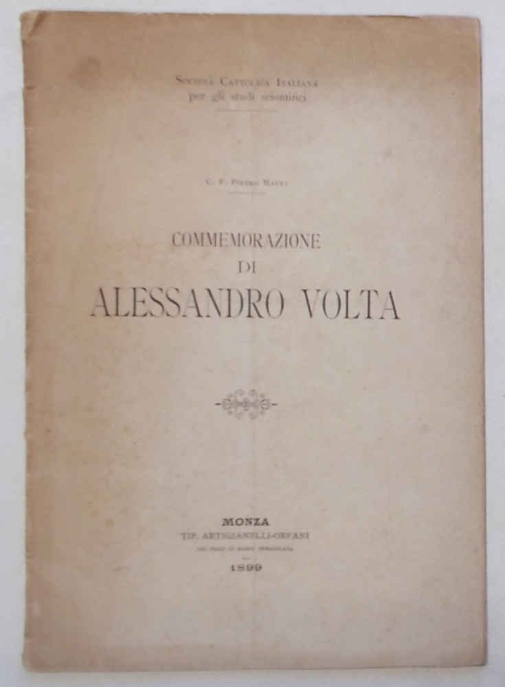 In 8° (cm. 23 x 16); pagg. 34; brossura origin. Carta scurita, ma molto buono. VG-. ** Commemorazione letta il 14 sett. 1899 in Como nella prima adunanza generale della Società Cattolica per gli studi scientifici.