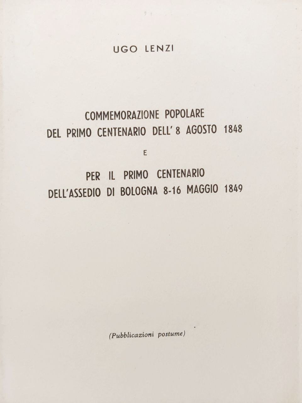 COMMEMORAZIONE POPOLARE DEL PRIMO CENTANRIO DELL'8 AGOSTO 1848 e PER IL PRIMO CENTENARIO DELL'ASSEDIO DI BOLOGNA 8-16 MAGGIO 1849.