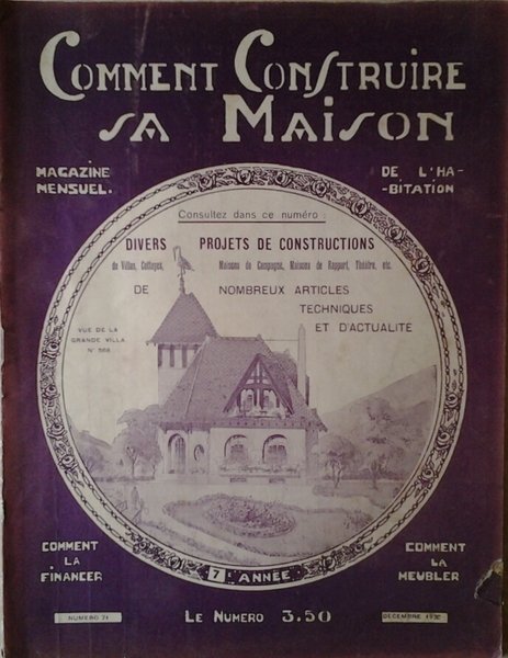 COMMENT CONSTRUIRE SA MAISON. MAGAZINE MENSUEL DE L'HABITATION. DECEMBRE 1930. N. 71.